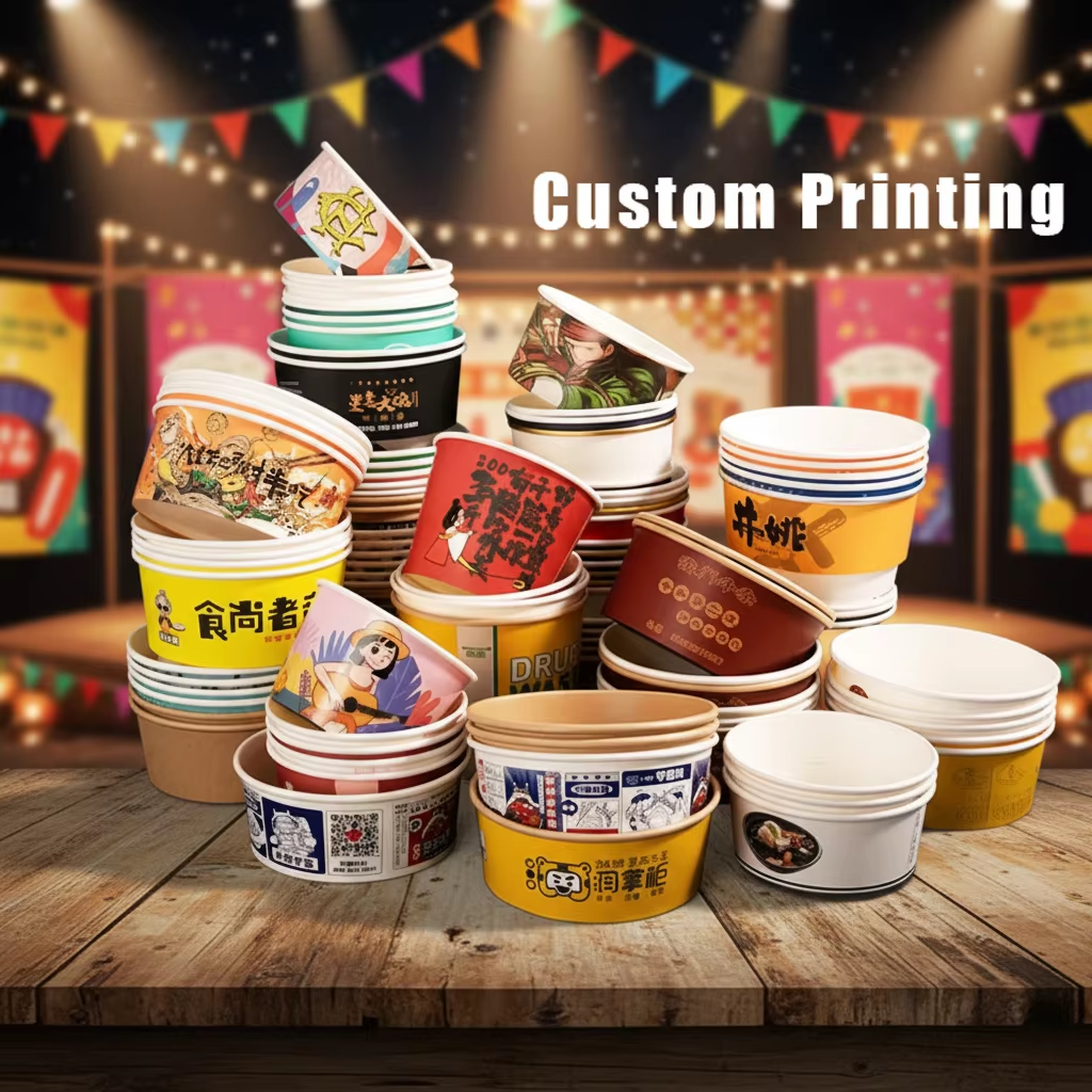 Paper Bowl Custom :Our disposable bowl has a transparent lid and paper lid and accept custom printed